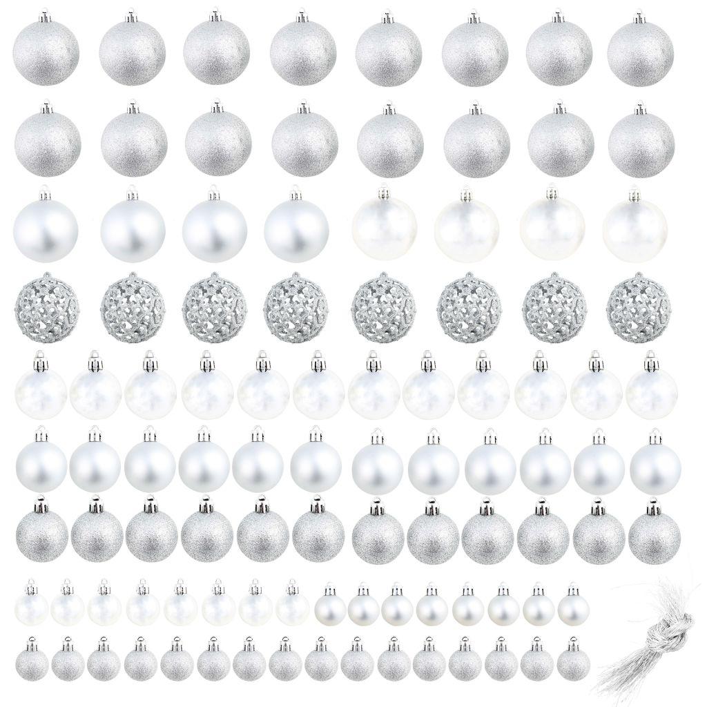 vidaXL 100-osaline jõulukuulide komplekt, 3/4/6 cm, hõbedane 245712