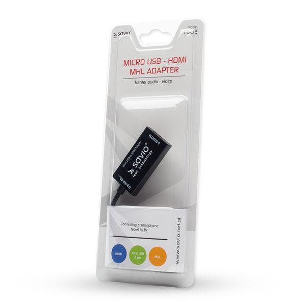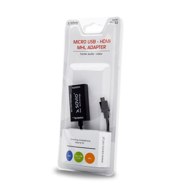 SAVIO Adapter cl-32 (MHL, Micro USB M - HDMI F; 0,10m; must värv)