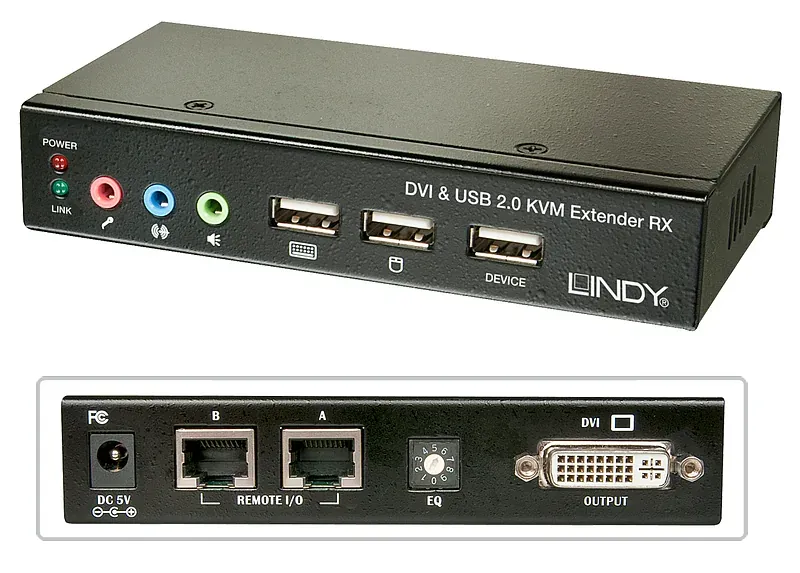 Lindy KVM pikendaja, DVI-D + USB + Heli (1920x1200 kuni 50m CAT5/6 kaabliga)