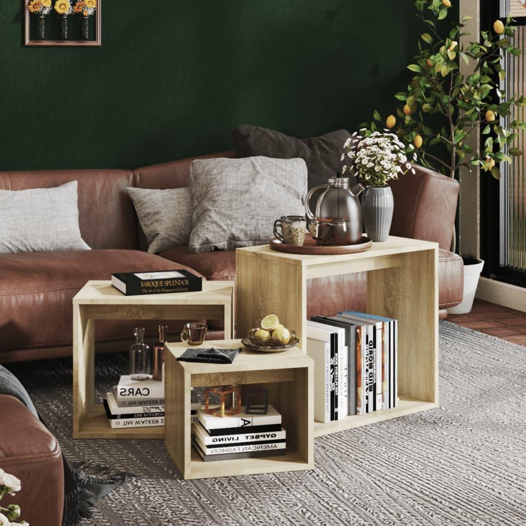 vidaXL üksteise alla mahtuvad lauad, 3 tk, Sonoma tamm, puitlaastplaat 808579