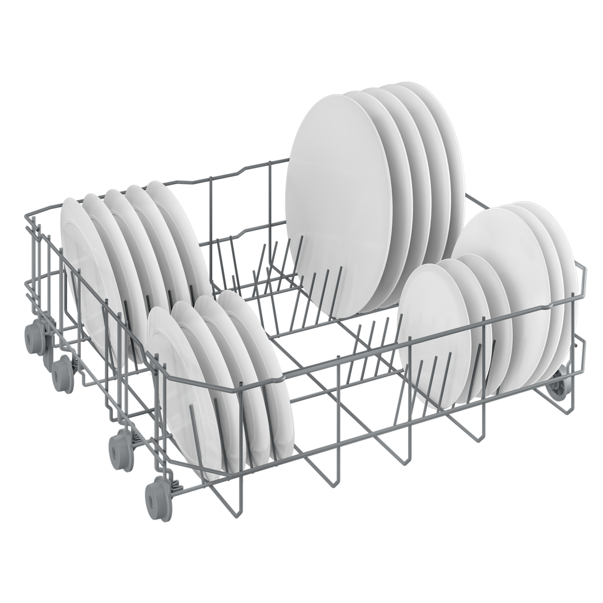 Reguleeritavad taldrikutoed. Tugede kokkupanemise funktsioon võimaldab nõudepesumasina korvis suurematele nõudele, nt suurtele pannidele ja pottidele, lisaruumi tekitada.