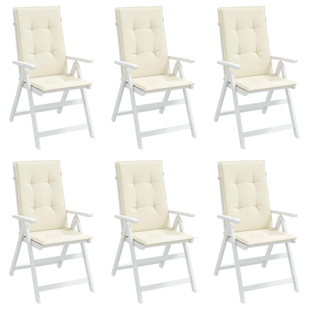vidaXL kõrge seljatoega toolipadjad 6 tk, kreem, 120x50x3 cm, kangas 314106