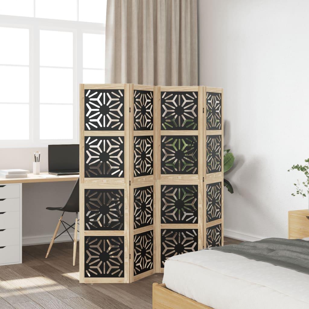 vidaXL 4 paneeliga ruumijagaja, pruun ja must, Paulownia puit 358801