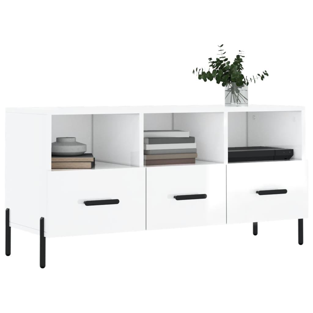 vidaXL telerikapp, kõrgläikega valge, 102 x 36 x 50 cm, tehispuit 829046