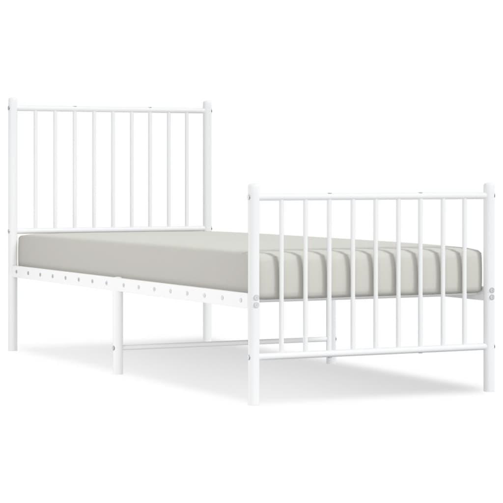 vidaXL metallist voodiraam peatsi ja jalutsiga, valge, 75x190 cm 350939