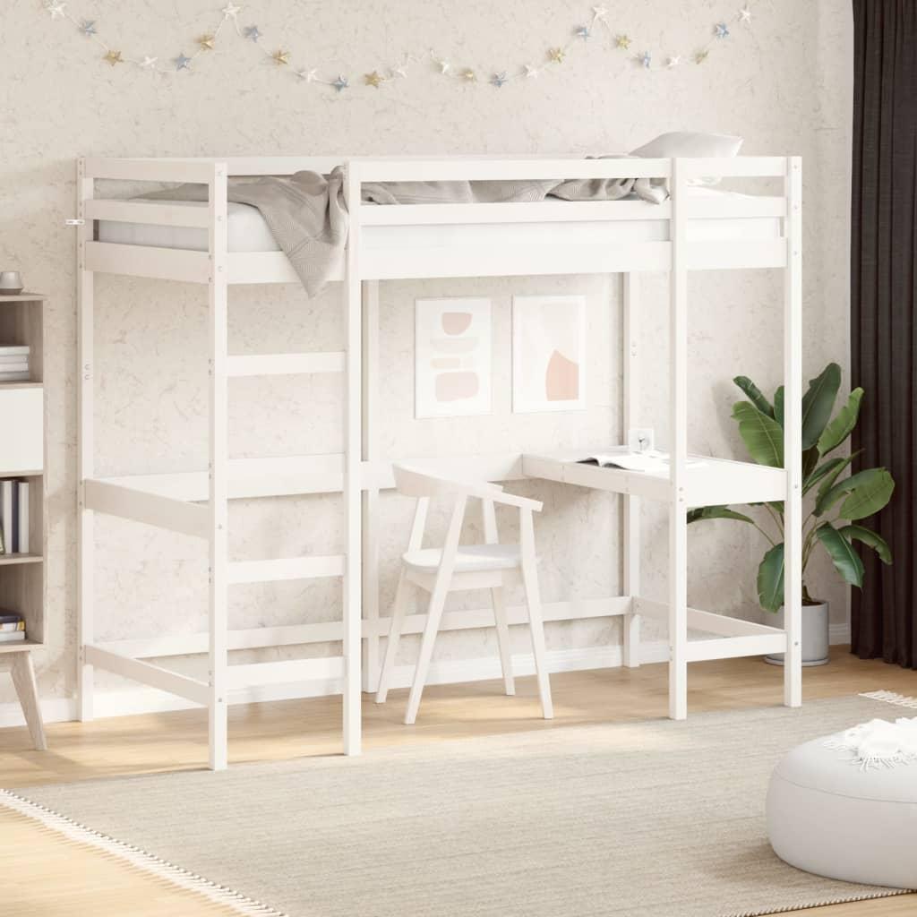 vidaXL narivoodi lauaga, valge, 90x190 cm, männipuit 842859