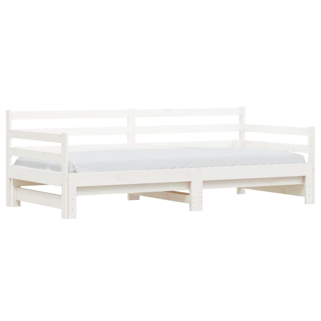 vidaXL päevavoodi väljatõmmatava osaga, valge, 90 x 200 cm, männipuit 836148