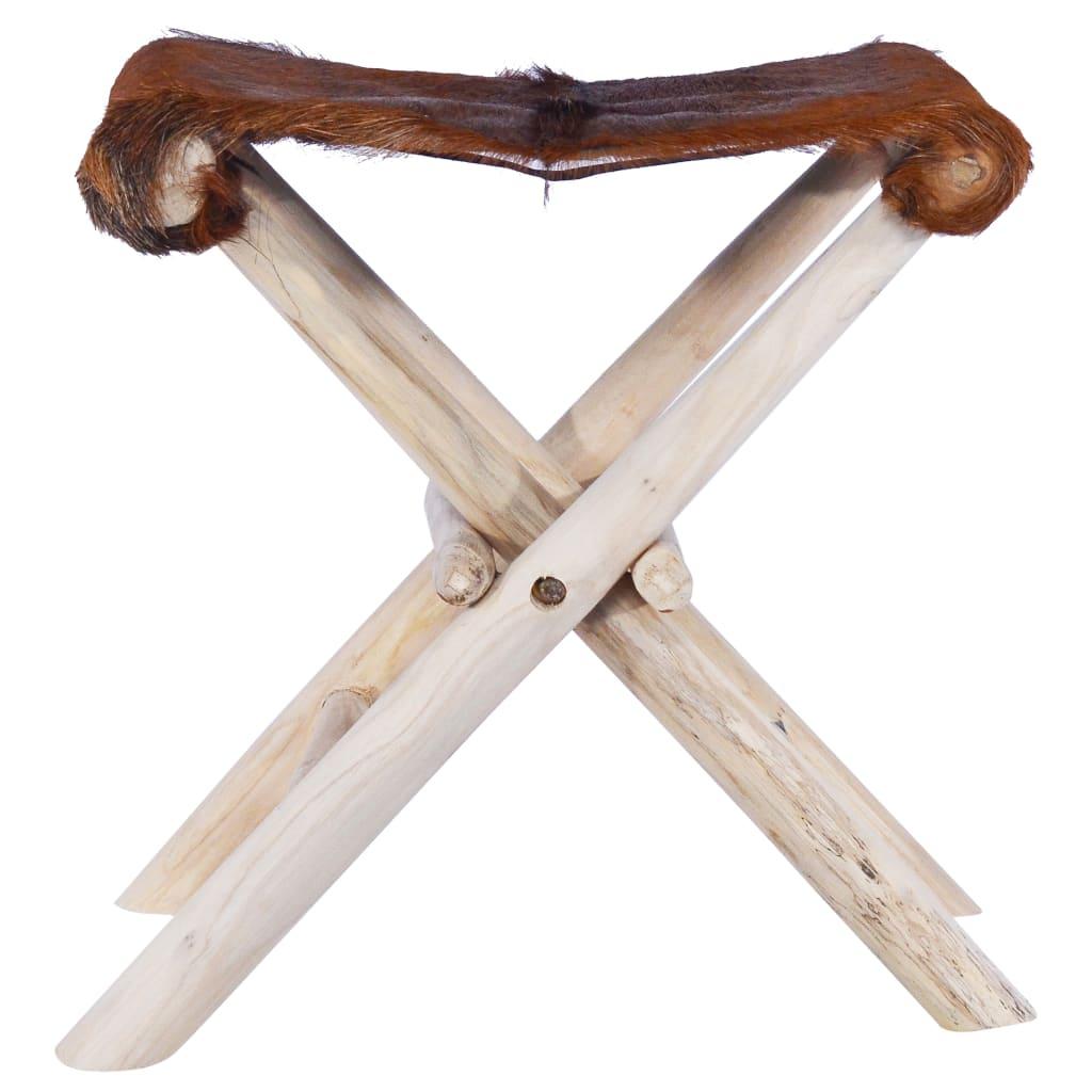 vidaXL kokkupandav taburet, ehtne kitsenahk ja tiikpuu 288815