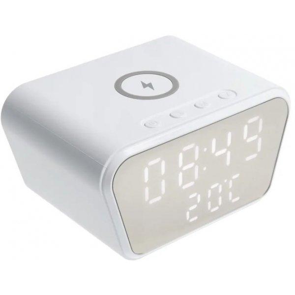 Mobiili lisaseade CP FM1 15W FM Radio Alarm Clock Thermometer Wireless Qi Charger White
