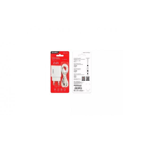 Mobiili lisaseade iKaku KSC-314 EU Mains Charger + USB to Lightning 2.4A 1m White