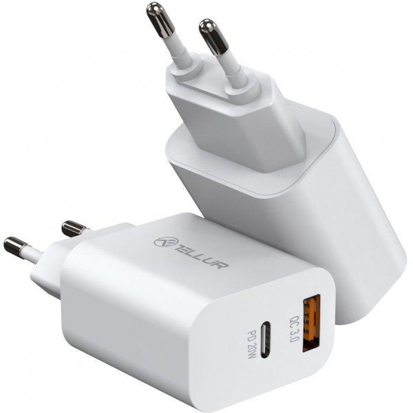 Mobiili lisaseade Tellur Wall Charger PDHC PD 20W + QC3,0 18W White