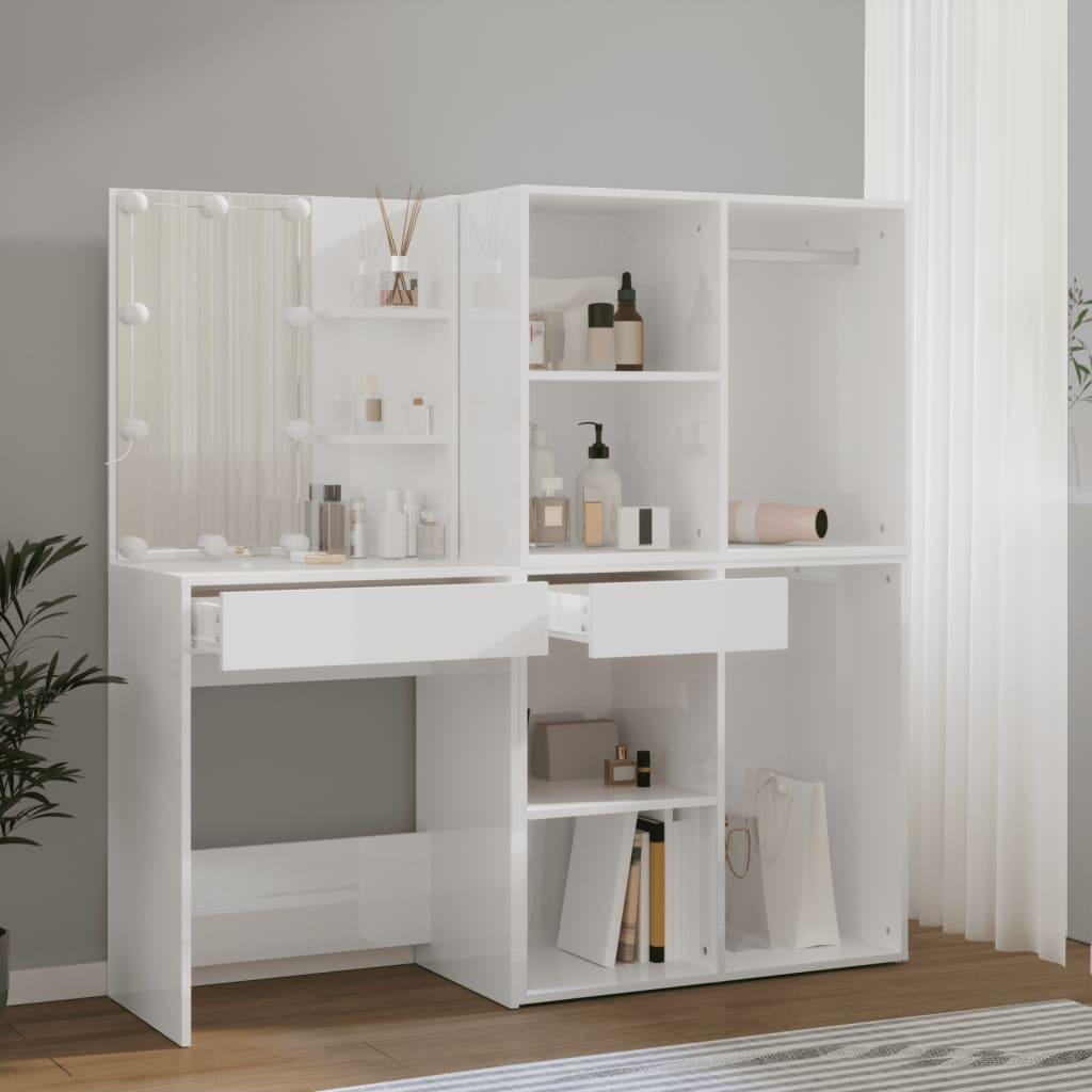 vidaXL LED tualettlaud 2 kapiga, kõrgläikega valge, tehispuit 3082032