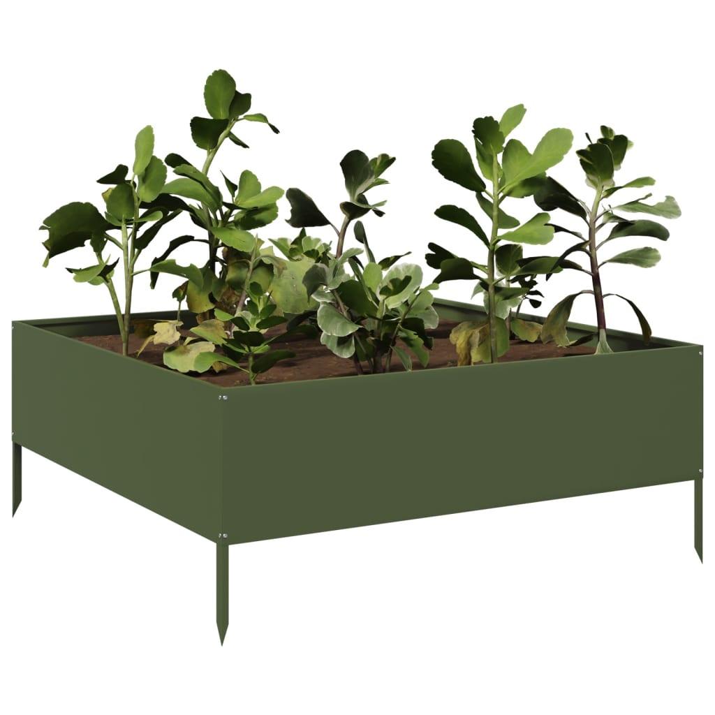 vidaXL kõrgendatud aia taimelava oliiviroheline 100x100x25 cm teras 851034