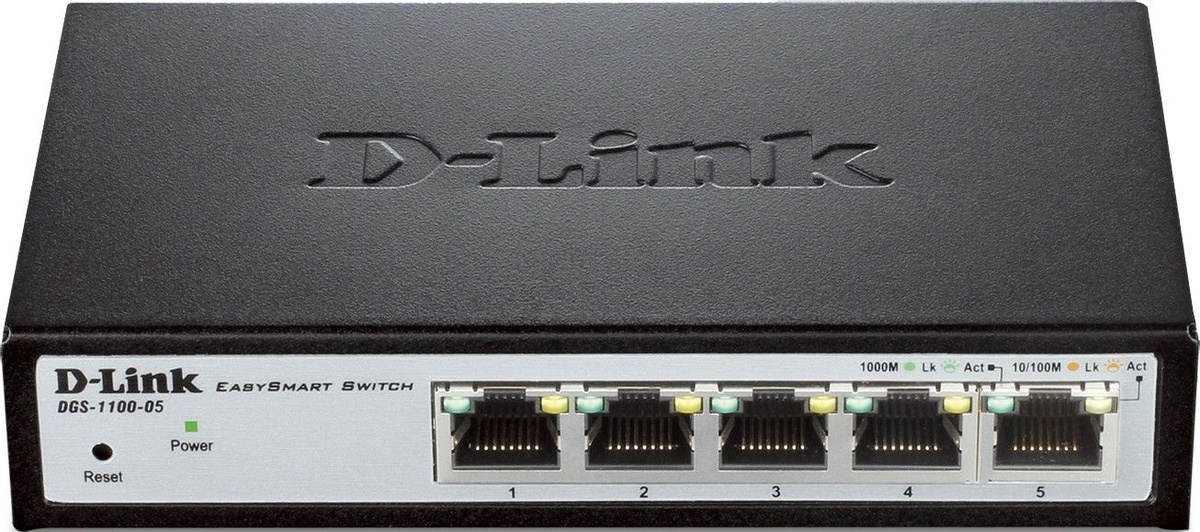 - D-Link Switch DGS-1100-05 Web Management, Desktop, 1 Gbps (RJ-45) ports quantity 5, Power supply type Single