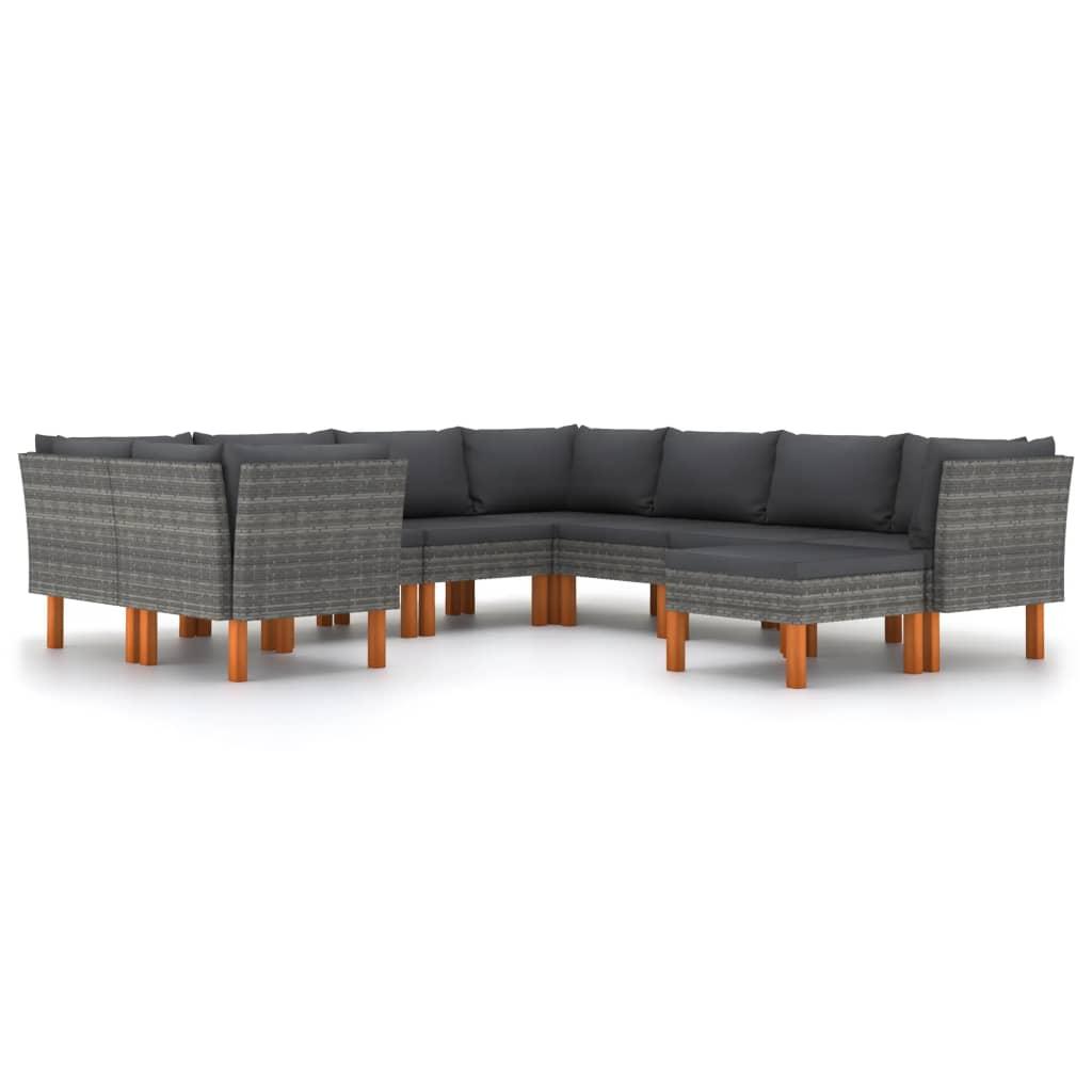 vidaXL 9-osaline aiamööblikomplekt patjadega, polürotang, hall 3059722