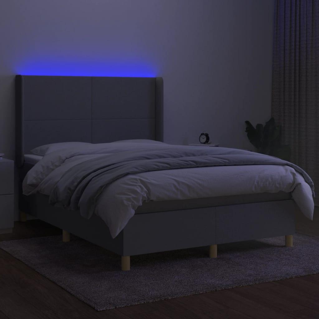 vidaXL kontinentaalvoodi madrats ja LED, helehall, 140x190 cm, kangas 3138709