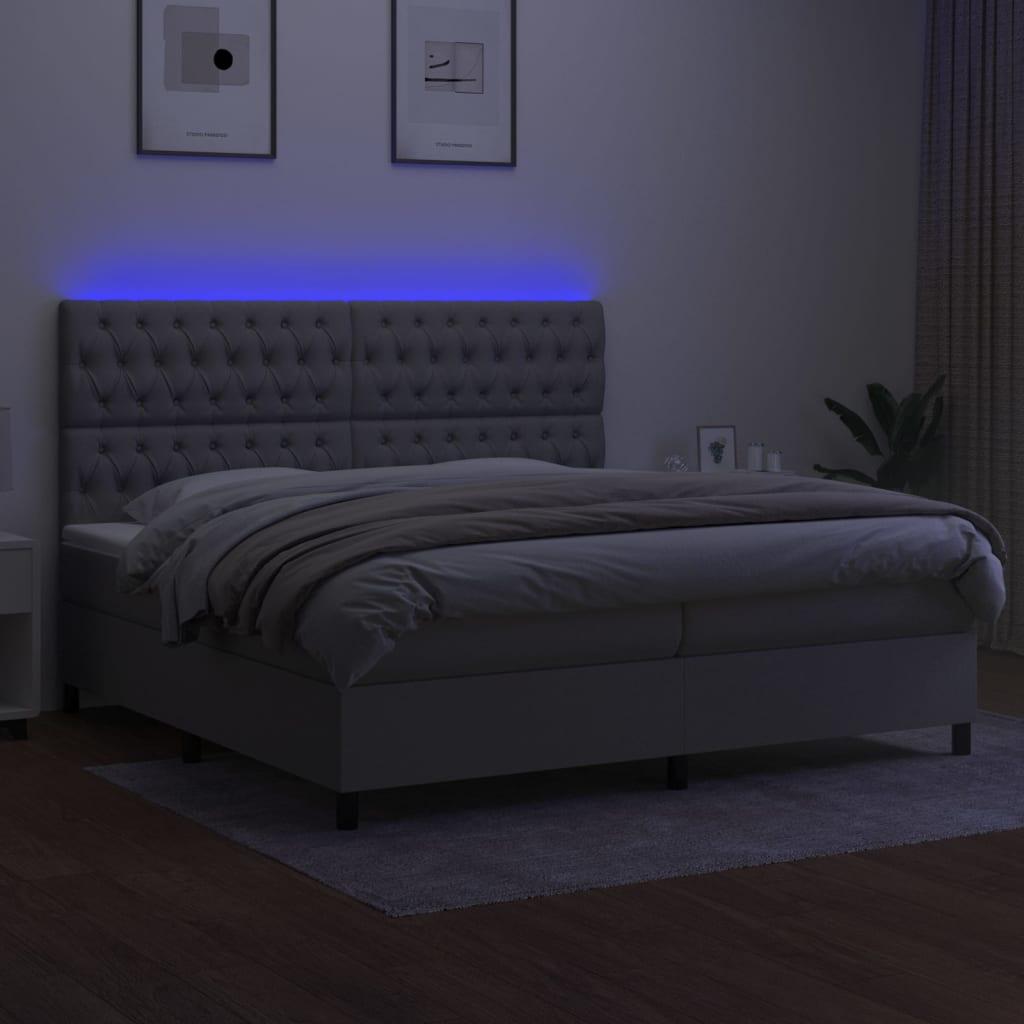vidaXL kontinentaalvoodi madrats ja LED, helehall, 200x200 cm, kangas 3135141