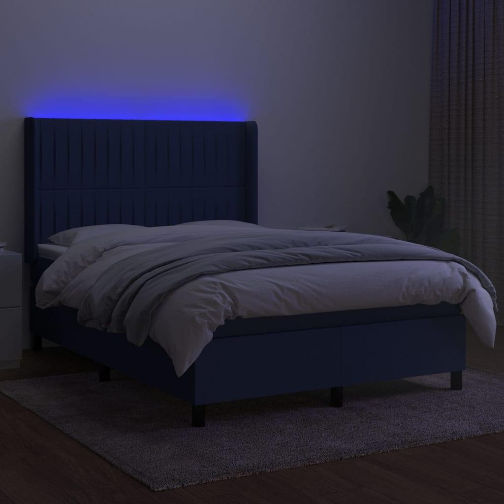 vidaXL kontinentaalvoodi madrats ja LED, sinine, 140x190 cm, kangas 3138475