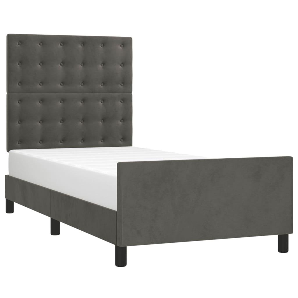 vidaXL voodiraam peatsiga, tumehall, 90x200 cm, samet 3125978