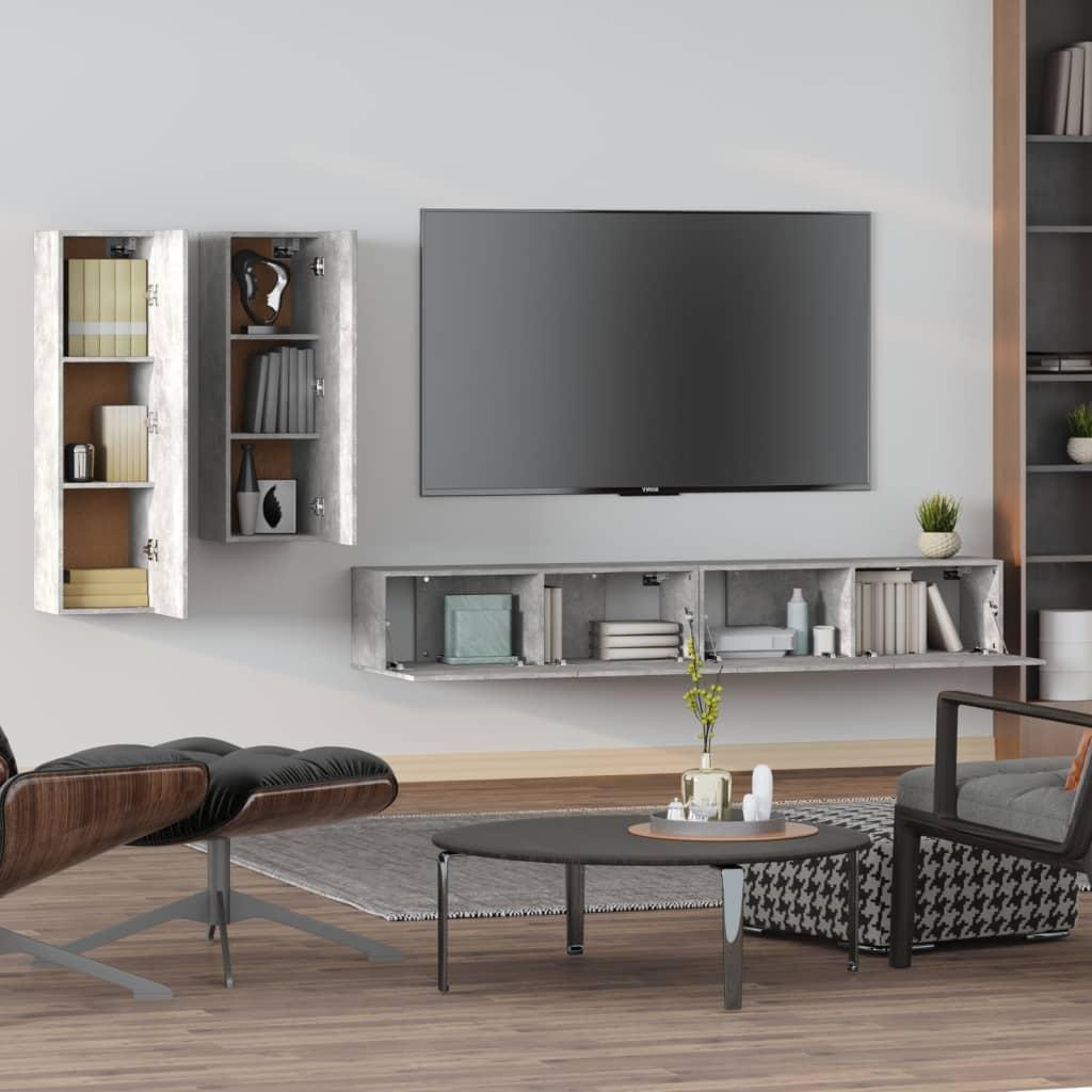 vidaXL 4-osaline telerikappide komplekt, betoonhall, tehispuit 3114633