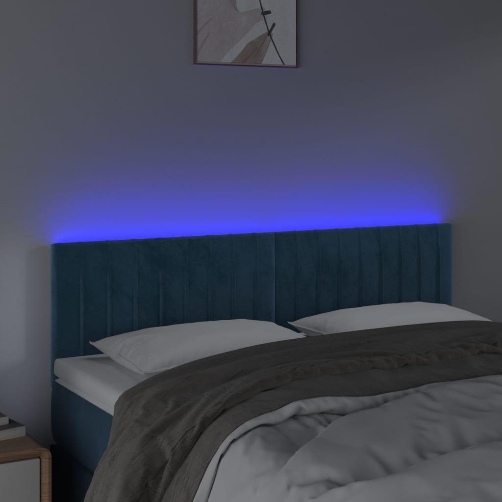 vidaXL LED-voodipeats, tumesinine, 144x5x78/88 cm, samet 3121902