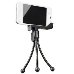Tripod and table mount for Apple iPhone 4/4S in one! Sturdy and compact. For setting up the iPhone on a table, e.g. Perfect for video calls (FaceTime). For mounting on a tripod for blur-free pictures. With 1/4 inch tripod thread. Made from top-quality plastic. Mini tripod Flexible. Flexible tripod legs with rubber feet. 1/4 inch tripod screw. Rubberized camera plate. Extremely compact. Attention: only compatible with Apple iPhone 4 and 4S, not suitable for older generation iPhones.