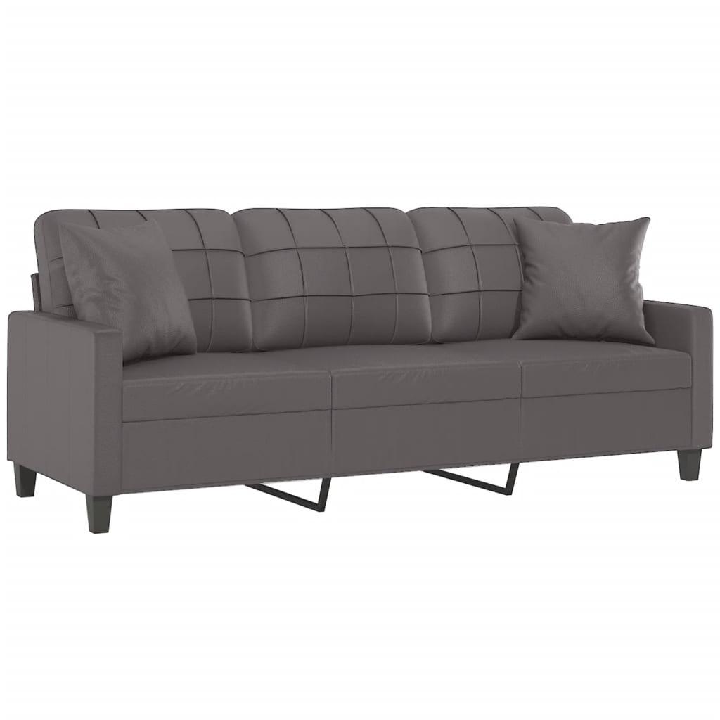 vidaXL 3-kohaline diivan patjadega, hall, 180 cm, kunstnahk 3200810