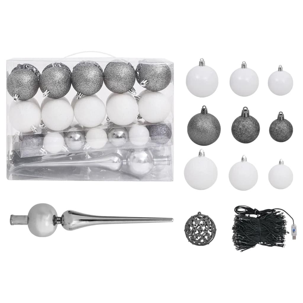 vidaXL valgustusega kunstkuusk kuulidega, must, 180 cm, PVC 3077676