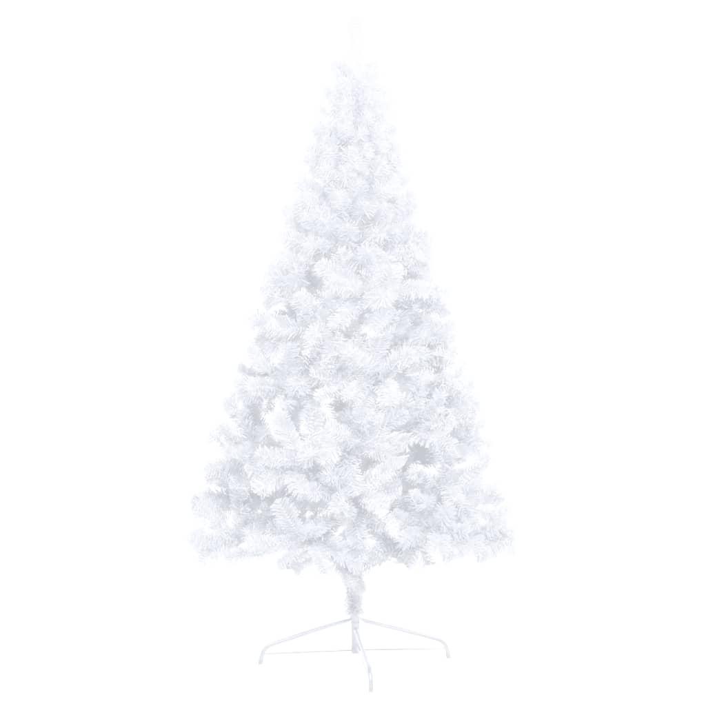 vidaXL valgustusega poolik kunstkuusk, kuulidega, valge, 150 cm 3077483