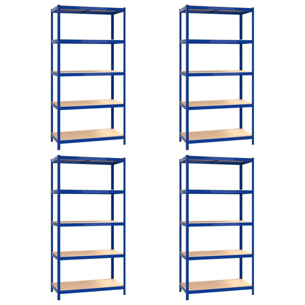 vidaXL 5-kihilised hoiuriiulid 4 tk sinine, teras ja tehispuit 3154214