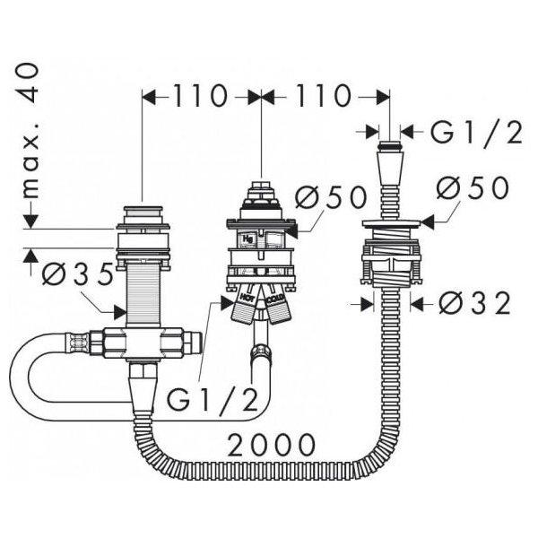 Hansgrohe Basic set for 3-hole rim mounted single lever bath mixer