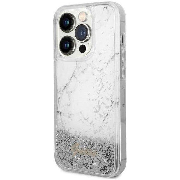 Mobiili lisaseade Guess "Liquid Glitter Marble iPhone 14 Pro" White