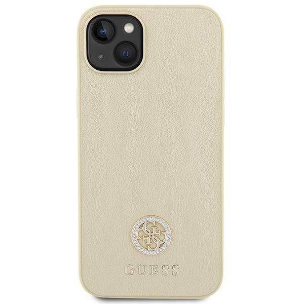 Mobiili lisaseade Guess "Leather 4G Metal Logo Strass iPhone 15" Gold