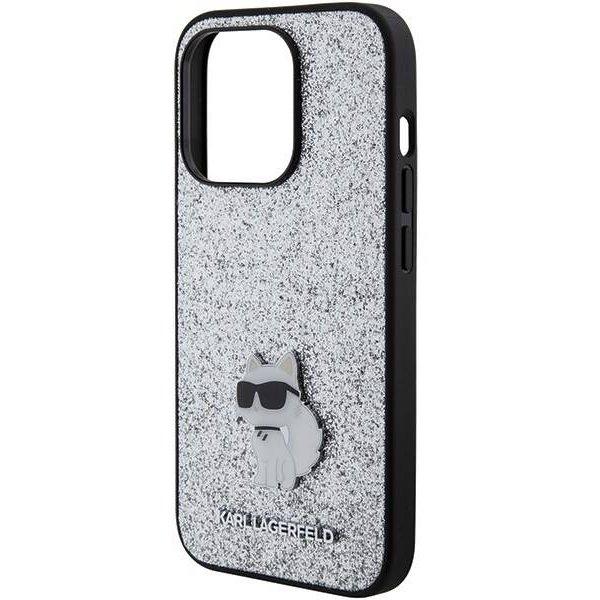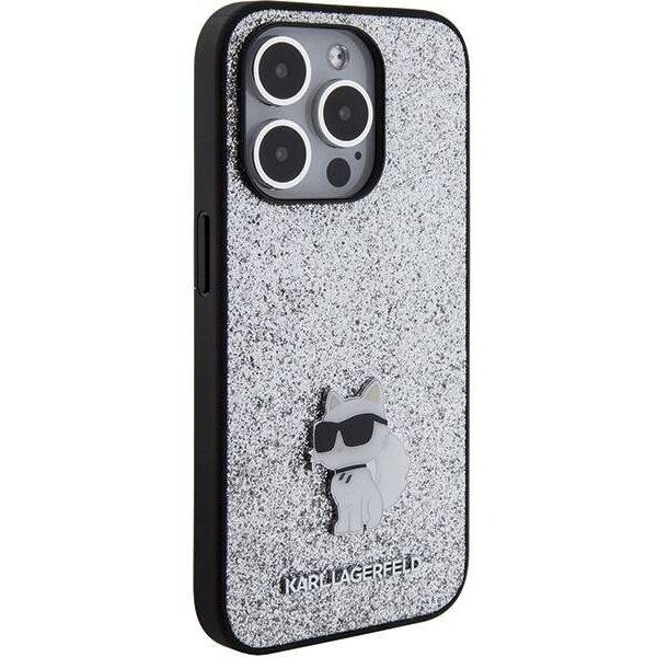 Mobiili lisaseade Karl Lagerfeld "Fixed Glitter Choupette Logo Metal Pin iPhone 15 Pro" Silver