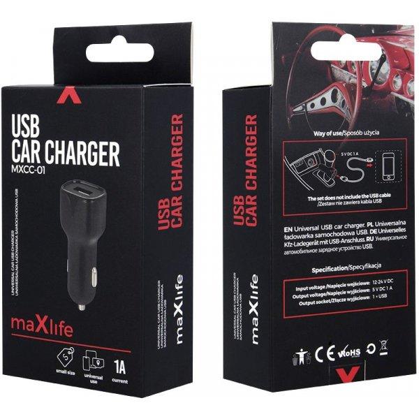 Mobiili lisaseade Maxlife MXCC-01 1x USB 1A Black