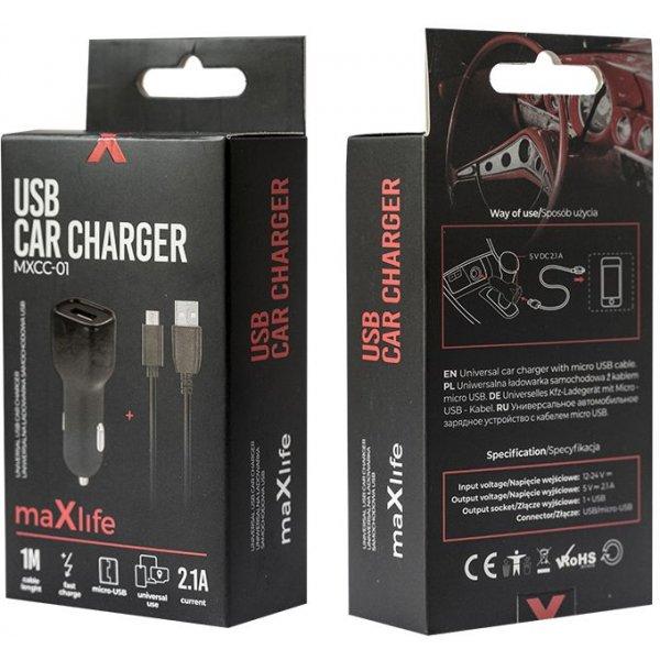 Mobiili lisaseade Maxlife MXCC-01 1x USB 2.1A Black + microUSB