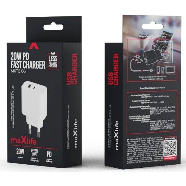 Mobiili lisaseade Maxlife MXTC-06 PD QC 1x USB-C 1x USB 20W White