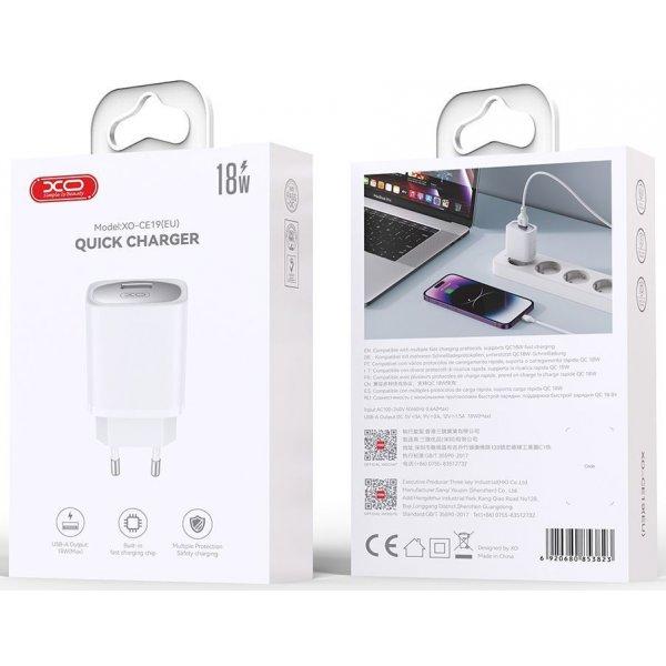 Mobiili lisaseade XO CE19 QC 18W 1x USB White