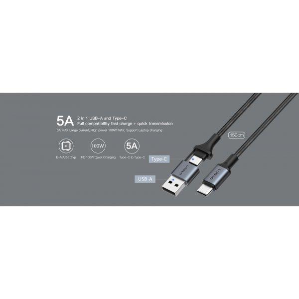 Mobiili lisaseade Orsen S8 2-IN-1 USB and Type-C 5A Black