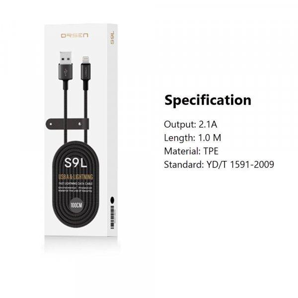 Mobiili lisaseade Orsen S9L USB A and Lightning 2.1A Black