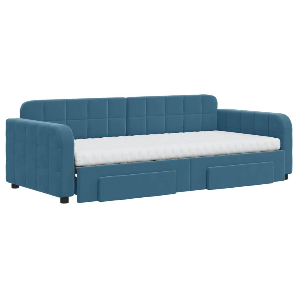 vidaXL diivanvoodi väljatõmmatava osaga, sinine, 90x200 cm, samet 3197000