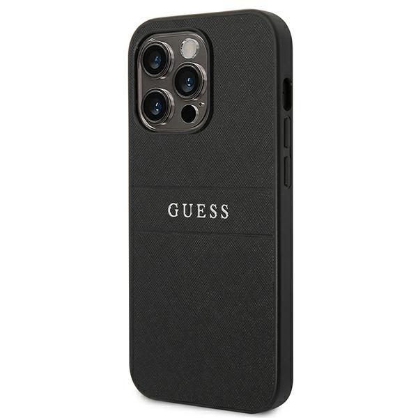 Mobiili lisaseade Guess Guess Saffiano metallist logoribad iPhone 14 Pro mbris (must)