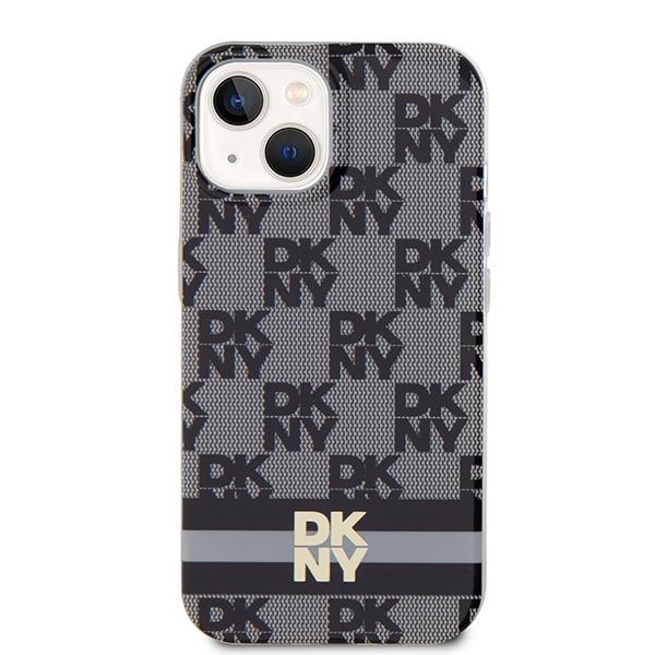Mobiili lisaseade DKNY DKHMP14SHCPTSK iPhone 14 / 15 / 13 6.1" tšarna/must kõvakott IML ruuduline monomuster ja trükitud triibud MagSafe