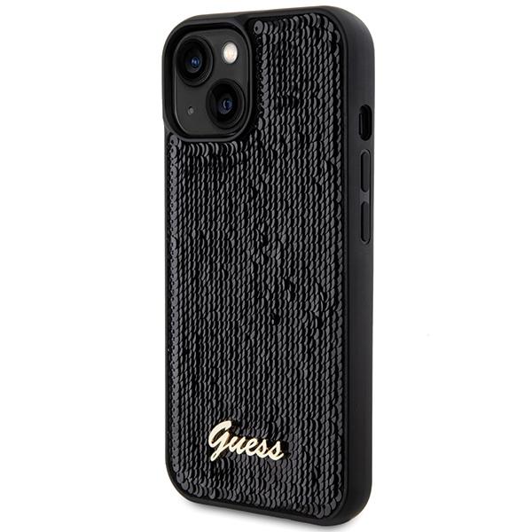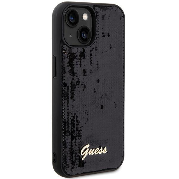 Mobiili lisaseade Guess GUHCP15SPSFDGSK iPhone 15 / 14 / 13 6.1" tšarny/must kõvakaaneline Sequin Script Metal