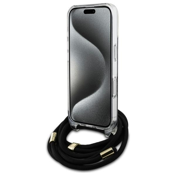 Mobiili lisaseade Guess GUHCP16SHC4SEK iPhone 16 6.1" tšarna/must kõvakott Crossbody Cord 4G Prindi