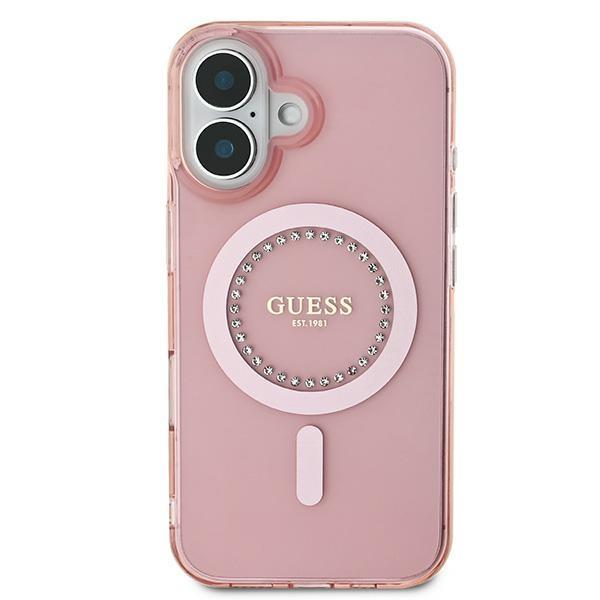 Mobiili lisaseade Guess GUHMP16SPFTDTEP iPhone 16 6.1" różowy/pink kõvakott IML Rhinestones MagSafe
