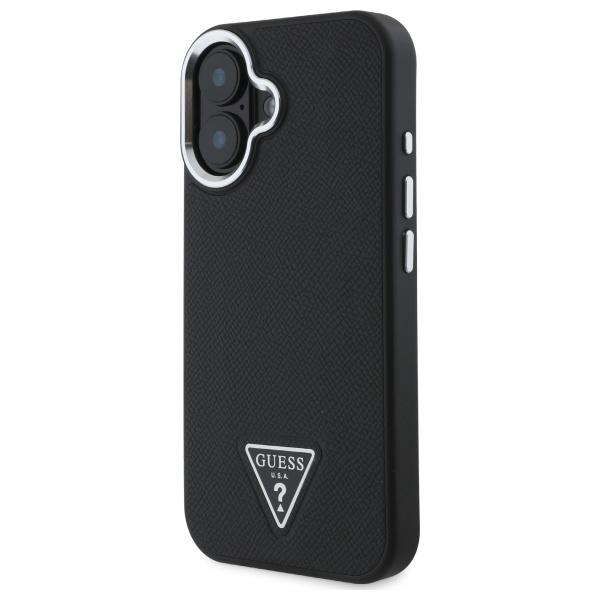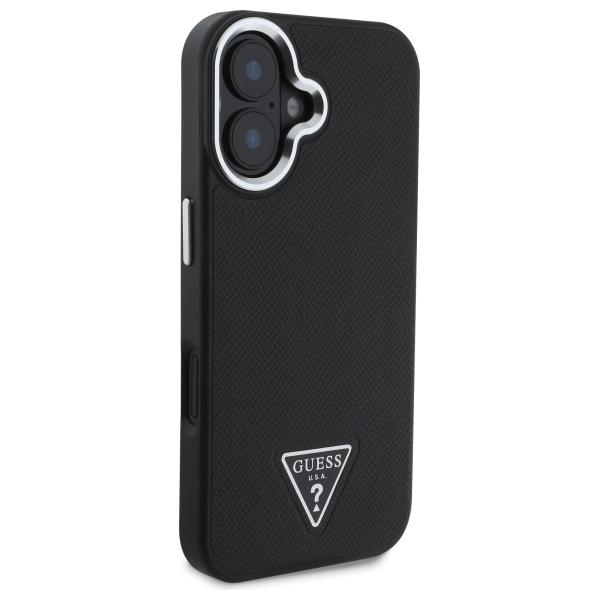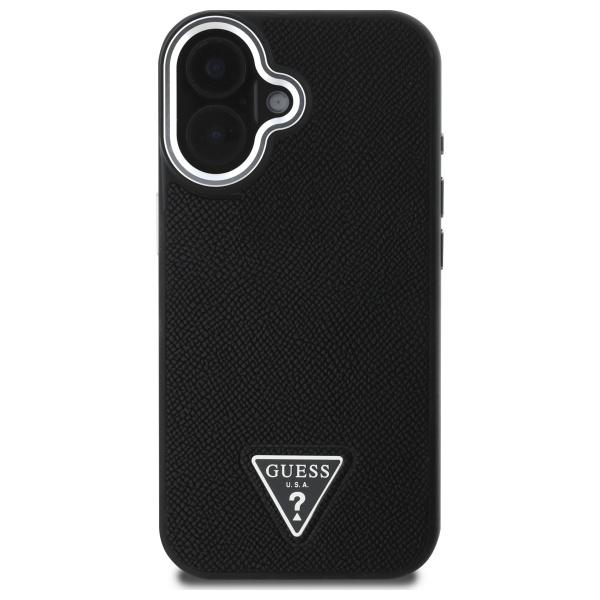 Mobiili lisaseade Guess GUHMP16SPGTSPSPSK iPhone 16 6.1" tšarna/must kõvakaaneline korpus Grained Triangle MagSafe
