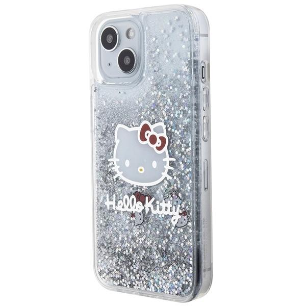 Mobiili lisaseade Hello Kitty HKHCP14SLIKHET iPhone 14 / 15 / 13 6.1" Silver/hõbedane kõvakaane Liquid Glitter Charms Kitty Head
