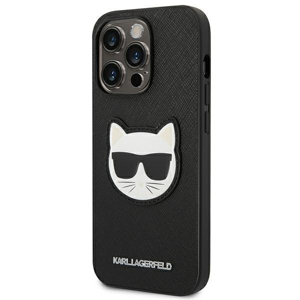 Mobiili lisaseade Karl Lagerfeld KLHCP14XSAPCHK iPhone 14 Pro Max 6.7" kõvakott tšarna/must Saffiano Choupette Head Patch