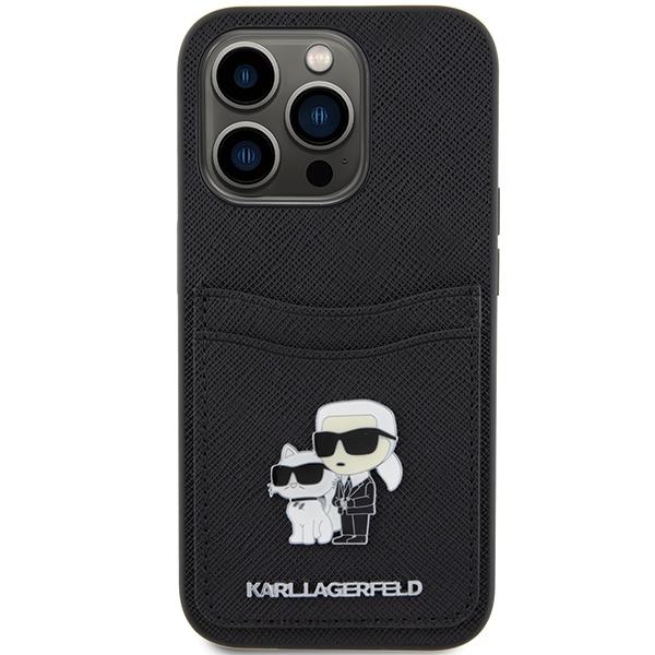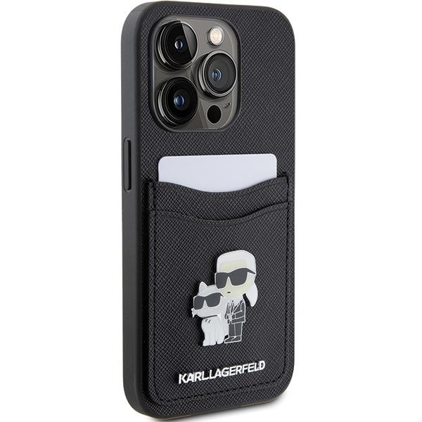 Mobiili lisaseade Karl Lagerfeld KLHCP15LSAPKCNPK iPhone 15 Pro 6.1" tšarny/must kõvakaaneline Saffiano Cardslot Karl AND Choupette Metal Pin